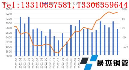 从海外厚壁无缝钢管产量来看,呈现同比继续回升局面。研究中心监测数据显示,2024年2月份,中国以外全球其他地区产量为6760万吨(详见图3),同比增长8.5%,增速较上月回升0.7个百分点。