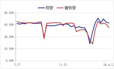 津冀区域管厂焊镀管产能利用率走势图
