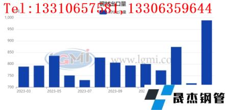 图32023年—2024年我国厚壁钢管出口走势图