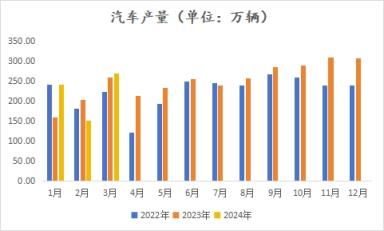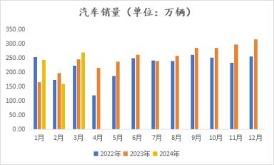 据中国汽车工业协会统计,2024年3月,汽车产销分别完成268.7万辆和269.4万辆,环比分别增长78.4%和70.2%,同比分别增长4%和9.9%。2024年1-3月,汽车产销分别完成660.6万辆和672万辆,同比分别增长6.4%和10.6%。