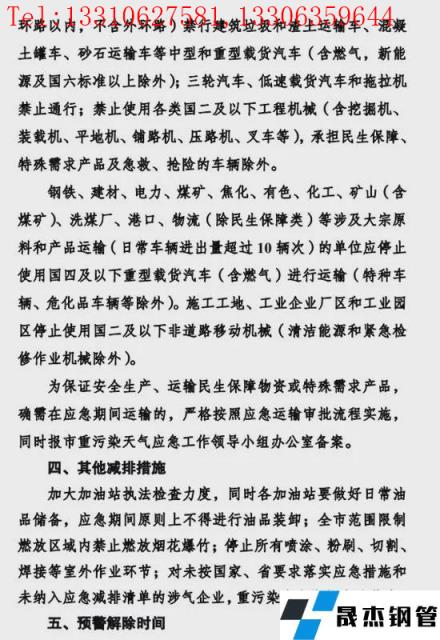 1.钢铁企业。严格按照《重污染天气应急减排清单》中“橙色预警减排措施”执行。