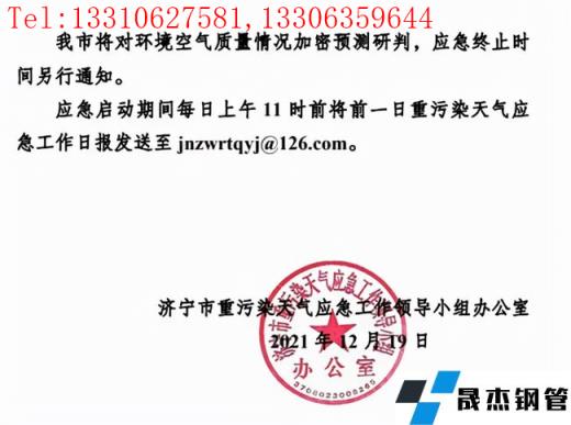 根据济宁市环境空气质量研判专家团队会商结果,预计2021年12月20日起济宁市将出现持续性中至重度污染,经市重污染天气应急工作领导小组办公室研究决定,济宁市自2021年12月19日15时发布重污染天气橙色预警,12月20日8时启动II级应急响应。