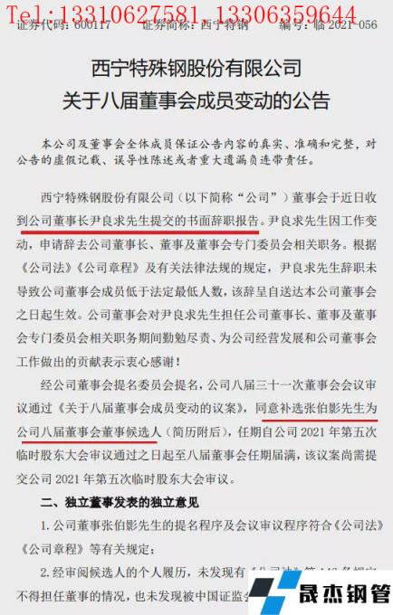 西宁特钢董事长尹良求、总工苗红生辞职!张伯影拟任董事!