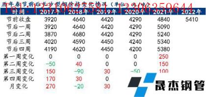 首先从近几年春节前后长沙型钢价格变化情况来看,除了2021年,其余几年节后第一周基本以稳为主,主要是因为需求未开始启动,市场平盘运行。元宵之后,需求逐渐得到释放,除了2020年因公共卫生事件影响,释放进度有所滞后,节后开盘价格出现回落,其余几年以震荡趋强运行为主,不管是无缝钢管厂还是贸易商,为获利消化冬储库存,均对节后开门红存在一定期待。而2022年节前收盘价格偏高,贸易商情绪较为谨慎,正常备库,主动冬储意愿不强,节后市场库存压力相对可控,对开盘价格存在一定支撑。