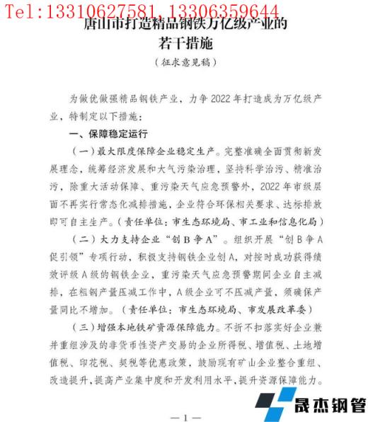 为做优做强精品钢铁产业,力争2022年打造成为亿万级产业,唐山市印发了《唐山市打造精品钢铁万亿级产业的若干措施(征求意见稿)》(以下简称《措施》)。