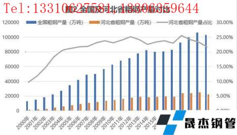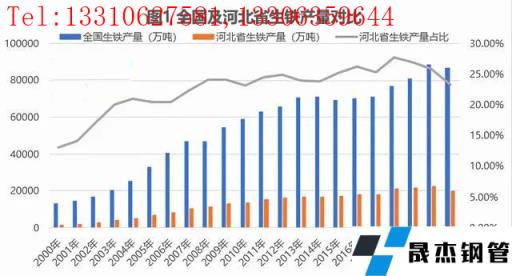河北省在中国钢铁行业中占据着举足轻重的位置,从河北省钢铁产量数据来看,2021年,河北省生铁产量为20202.98万吨,同比下降11.8%,占全国生铁产量的23.3%(详见图1);粗钢产量为22496.45万吨,同比下降9.9%,占全国粗钢产量的21.8%(详见图2);厚壁管产量为29559.38万吨,同比下降1.8%,占全国厚壁管产量的22.1%(详见图3)。