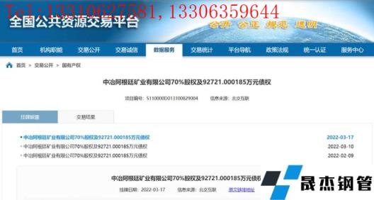 3月17日,全国公共资源交易平台发布最新消息,中国冶金科工股份有限公司将对其旗下中冶阿根廷矿业有限公司的股权及债权进行转让,股权转让比例为70%,债权转让金额高达9.27亿元。小编收集信息如下: