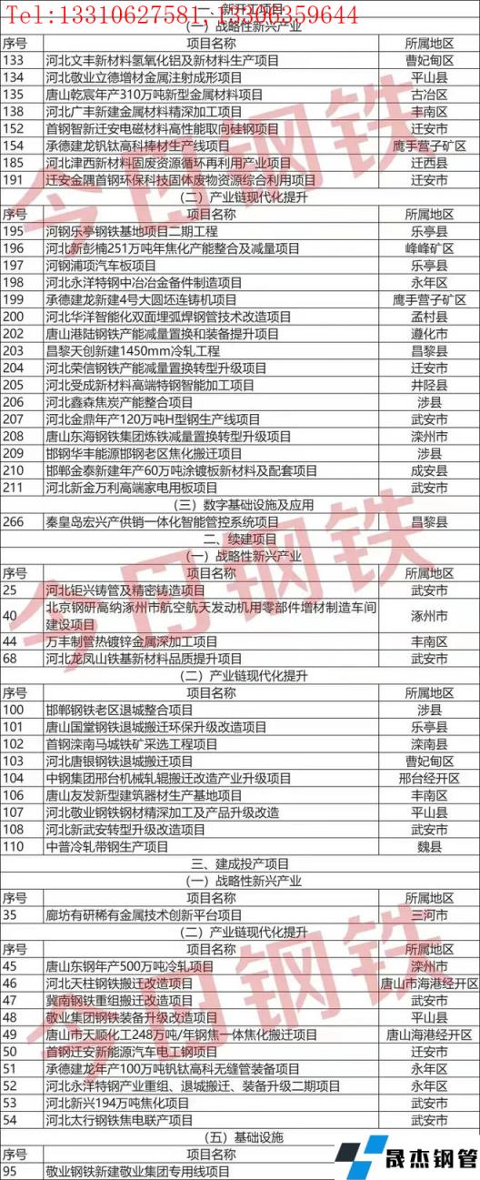 2022年1月4日,经省政府批准,河北省发展改革委印发《河北省2022年省重点建设项目名单》。名单共涉及2022年省重点建设项目共安排695项,总投资1.12万亿元,涵盖战略性新兴产业、产业链现代化提升、数字基础设施及应用、现代服务业、重大基础设施等项目类型。这些重点建设项目中,共涉及钢铁项目50个。