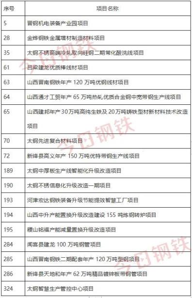 2022年03月14日,山西省人民政府办公厅发布了2022年山西省级重点工程项目名单,共计518项。其中产业领域286项、科技创新领域18项、基础设施领域142项、社会民生领域72项。其中,涵盖18个钢铁项目。