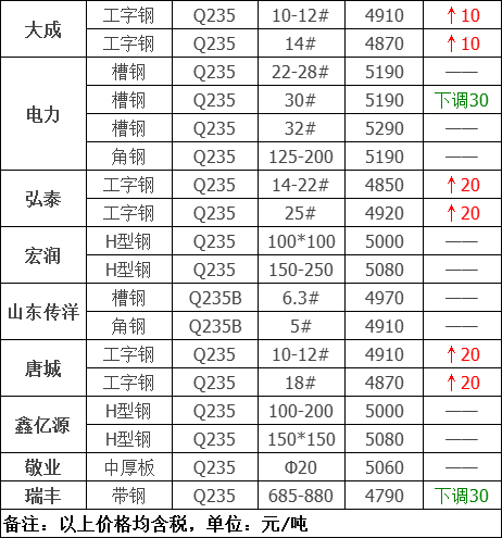 今日型、板材共9家钢厂调价发布,其中: