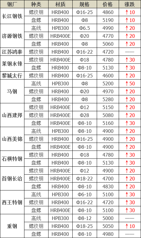 钢厂调价