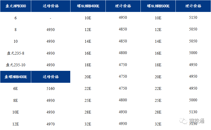 2、盘螺平稳:HRB400EΦ8-10mm盘螺指导价格为4940元,6mm加价500元/吨;
