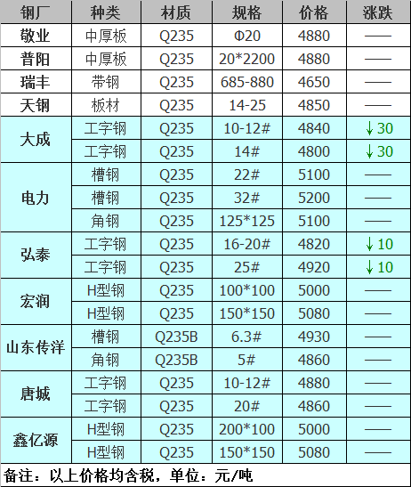 1月18日淮钢废钢下调30元:钢筋切粒3690汽车切片3640炉一3560重一3540重二3510重三3480剪中3440中一3390小一2890统料2540轻薄料2390破碎一3500压块一3250含税。