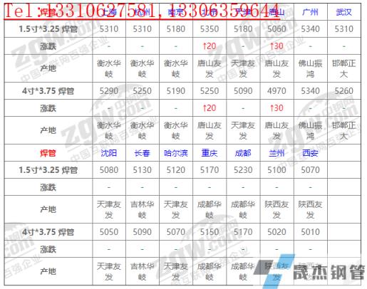 全国15个主要市场1.5寸*3.25 焊管平均价格5196元/吨,较上个交易日上调3元/吨。