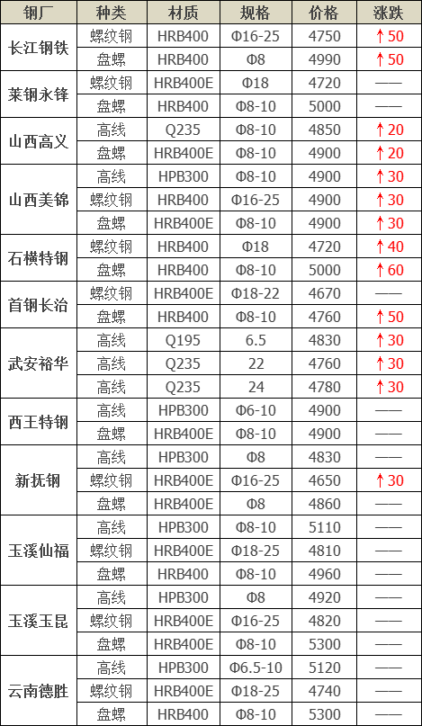 上调10家,占比43.5%,调价幅度20-60元/吨,