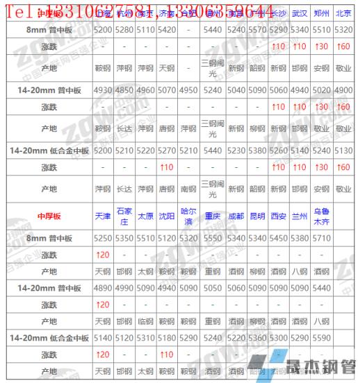 全国23个主要市场14-20mm 低合金中板平均价格5260元/吨,较上个交易日上调8元/吨。
