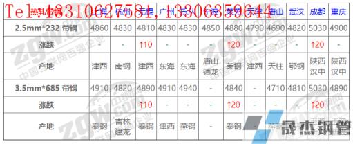 全国12个主要市场2.5mm*232 带钢平均价格4843元/吨,较上个交易日上调4元/吨。