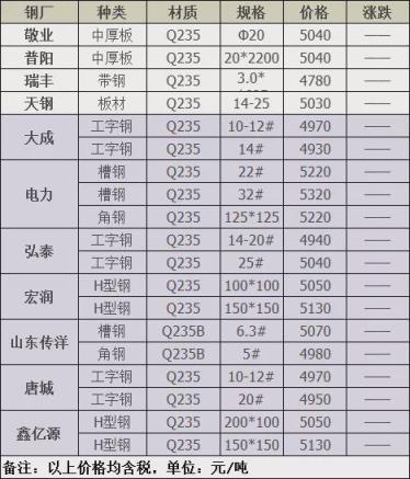 今日板、型材共11家无缝钢管厂调价发布,其中: