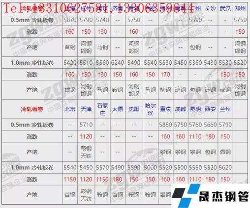 全国23个主要市场1.0mm 冷轧板卷平均价格5547元/吨,较上个交易日上调62元/吨。