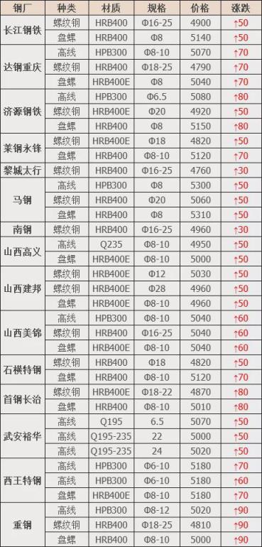 8日起广东韶钢:各料型上调30-50元/吨,具体价格以厂家价格表为准。