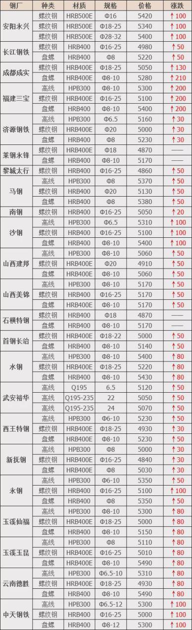 上调35家,占比85.5%,调价幅度10-210元/吨,