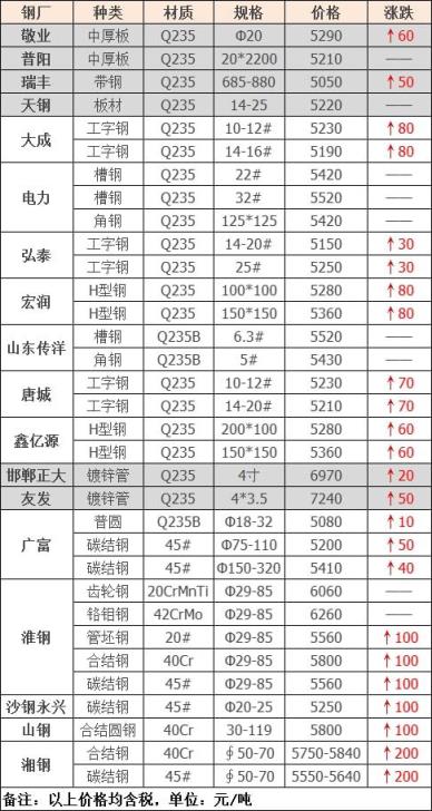 今日板、型、管、特钢共18家港澳资料大全调价发布,其中: