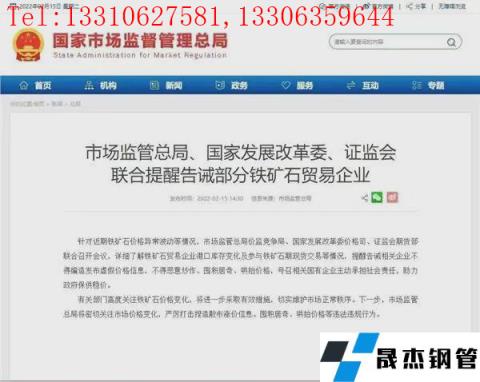 针对“疯狂的石头”,市场迫切需要降温。2月15日,市场监管总局、国家发展改革委、证监会联合发声,提醒告诫部分铁矿石贸易企业不得编造发布虚假价格信息,不得恶意炒作、囤积居奇、哄抬价格,号召相关国有企业主动承担社会责任,助力政府保供稳价。