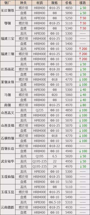 涨幅最高为福建三钢建材;