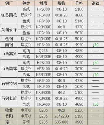 今日建、板材共13家港澳资料大全调价发布,其中: