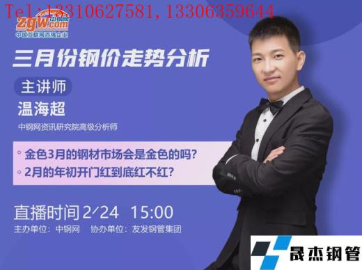 3月旺季临近,厚壁钢管市场会是金色的吗?在库存大幅走高,钢价如何演绎?伴随着政策监管日益趋严,铁矿石价格大跌之后,一季度还存在哪些机会?更多热点资讯,请关注2月24日下午三点,2022年三月份行情直播会,河南银商通实业有限公司总经理孙建、资讯研究院高级分析师温海超等,围绕着“市场厚壁钢管需求方向解析”、“当下政策的影响”、“影响钢价热点话题”、“3月份钢价走势预测”等热点话题鞭辟入里、层层分析。