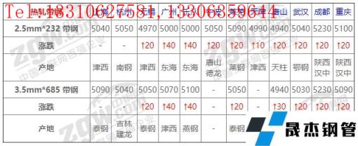 全国12个主要市场2.5mm*232 带钢平均价格5042元/吨,较上个交易日上调19元/吨。