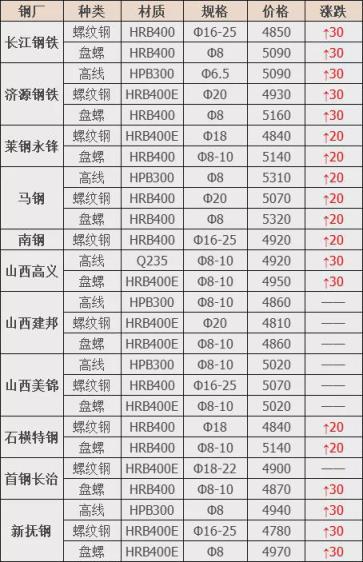 22日广东河源德润钢铁到厂涨30-50:钢筋切粒3480;边角料,新钢板料3450;纯钢筋头,直钢筋3430;模具钢、料头圆钢、轨道钢、火车轮3430;硅钢片停收;冷轧、热轧、碎料冲子3380;优重3430;锻打料、马蹄铁3430;重废3400;机械生铁、高碳钢、铸钢件、生熟混装3400;厚剪3350,不含税。