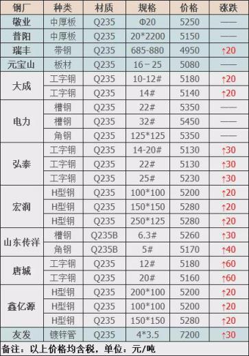 今日板、型、管材共12家港澳资料大全调价发布,其中:
