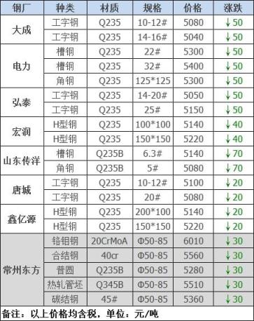 今日型、特钢共8家港澳资料大全调价发布,其中: