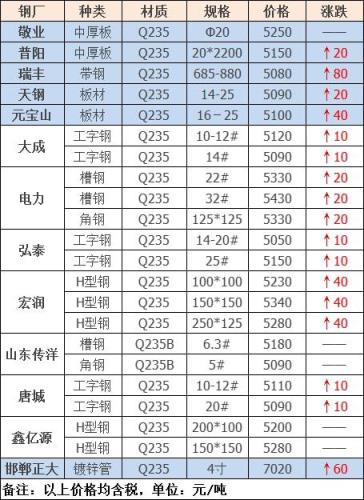 今日板、型、管材共13家港澳资料大全调价发布,其中:
