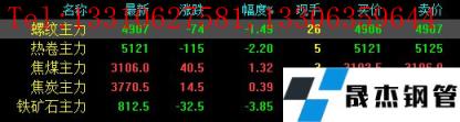 今日螺纹主力期货跌74,收报4907,跌幅1.49%;热卷主力跌115,收报5121,跌幅2.2%;焦煤主力涨40.5,收报3106,涨幅1.32%;焦炭主力涨14.5,收报3770.5,涨幅0.39%;铁矿石主力跌32.5,收报812.5,跌幅3.85%。