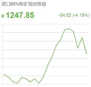 3月15日,进口铁矿石价格普遍走低,进口65%粉矿现货贸易价格跌54.52收于1247.85,进口65%粉矿到岸价格跌5.75收于176.82。