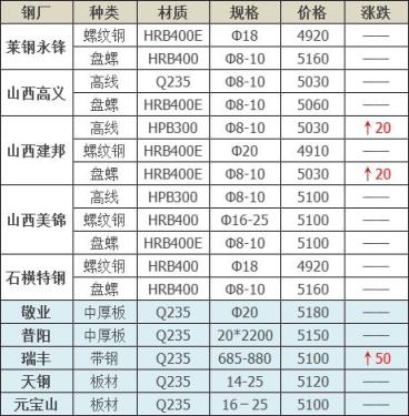 上调2家,占比11.8%,调价幅度20-50元/吨,