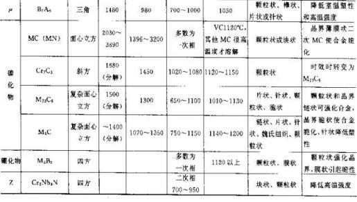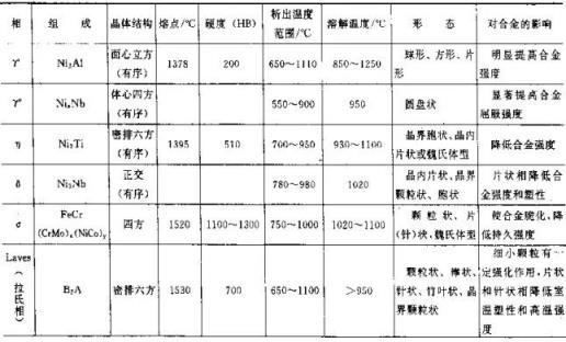 高温合金的基体是Ni-Cr、Fe-Ni-Cr和Co-Cr-Ni奥氏体。高温合金中的第二相有各种碳化物、氮化物、硼化物和各种合金间化合物。γ´[Ni3(AlxTi)]和