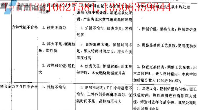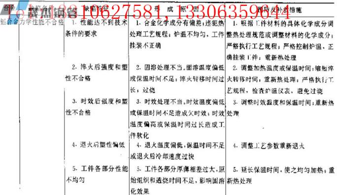 ▼表3有色金属热处理常见力学性能缺陷及防止方法