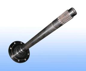 半轴是机动车辆上驱动车轮的杆件,一般载重车采用全浮式半轴,它主要承受驱动和制动转矩,小客车多用半浮式半轴,工作载荷为弯扭复合力矩。此外,半轴还受一定的冲击载荷。多数半轴为一端法兰式(图1a),重型车常用二端花键式(图1b),而越野车的内、外半轴是变截面台阶轴(图1c)。半轴使用寿命主要决定于花键齿的抗压陷和耐磨损的性能。载重车半轴易损坏的部位还有杆部与凸缘的连结处(图1a中C处)或花键端(图1a中A处)以及花键与杆部相连结处(图1a中B处)。A处的花键齿与齿轮直接接触,受冲击扭转力最大。B、C处应力集中严重。在上述部位易产生疲劳断裂。