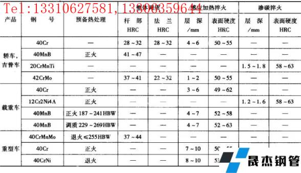 越野车的内、外半轴一般是变截面台阶轴,要求较高的冲击韧度;过去往往采用低碳合金钢渗碳处理,现多采用中碳合金钢感应淬火。3 半轴的热处理工艺
