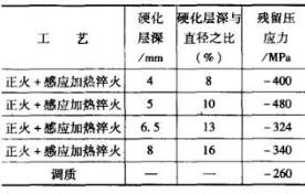 从表中可看出硬化层深超过最佳值后,再增加硬化层深则表面残留压应力下降。试验表明,随表面残留压应力下降,其疲劳寿命也随之下降。半轴感应加热淬火,一般都采用功率为100~320kW、频率为2.5~8kHz的中频电源,连续加热的频率较低,整体一次感应加热淬火的所需频率较高,功率也大些。为了保证法兰圆角加热,可采用带导磁体的感应器。