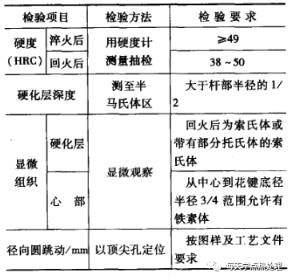 ▲图820CrMnTi半轴渗碳热处理工艺4 半轴的质量检验常用合金结构钢半轴调质的质量检验见表12。半轴表面感应淬火的质量检验见表13。▼表12常用合金结构钢半轴调质的质量检验