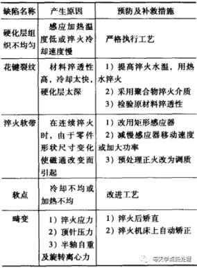 ▼表15半轴表面感应淬火常见缺陷的预防及补救措施