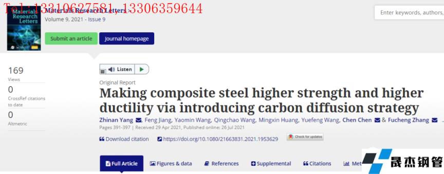 在本研究中,燕山大学提供了一种新的元素扩散策略,即轻元素(如碳)的长程扩散。与初始整体马氏体钢相比,该策略不会降低每一层的机械性能,并提高复合马氏体钢的强度和延展性。相关研究成果以题“Making composite steel higher strength and higher ductility via introducing carbon diffusion strategy”发表在国际著名期刊Materials Research Letters上。
