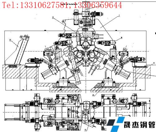 可调式三辊定心装置,分布在芯棒移送系统和轧机之间,它的作用一是抱毛管,二是抱芯棒,三是打开接受毛管;