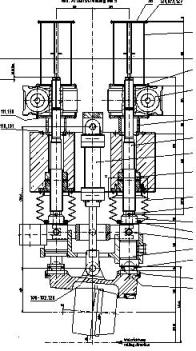 轧辊调整装置保证按照轧制要求调整孔喉和辗轧角,由两个电动压下丝杠完成的,它们可单独操作,也可以同时操作,当两个压下丝杠进行反向运动时,可调整轧辊的辗轧角,确定辗轧角后,两个丝杠同时压下或抬起可调整轧辊的孔喉尺寸。在两个压下丝杠之间,机架内有一个液压缸与轧辊座连接,它的作用是保持辊箱的稳定,避免压下丝杠端部与转毂之间产生间隙,我们称之为平衡缸。