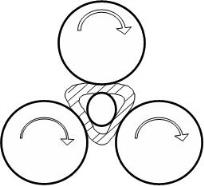 Assel轧管机在轧制过程中,厚壁钢管横截面的变化是从圆到圆三角形,最后再归圆的过程。