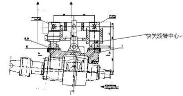 当采用“快关”方式进行动作时,在轧机开始轧制前,液压缸回收一定的行程,由于该液压缸的上部顶住了轧机上辊出口侧的压下丝杠,下部顶住上轧辊座的出口侧,它回收了一定的行程,而轧辊座的入口仍保持在原压下位置,上轧辊座在上辊平衡液压缸的拉动下,带着上轧辊,以轧辊座入口的固定点为旋转中心,向上旋转一定的角度。